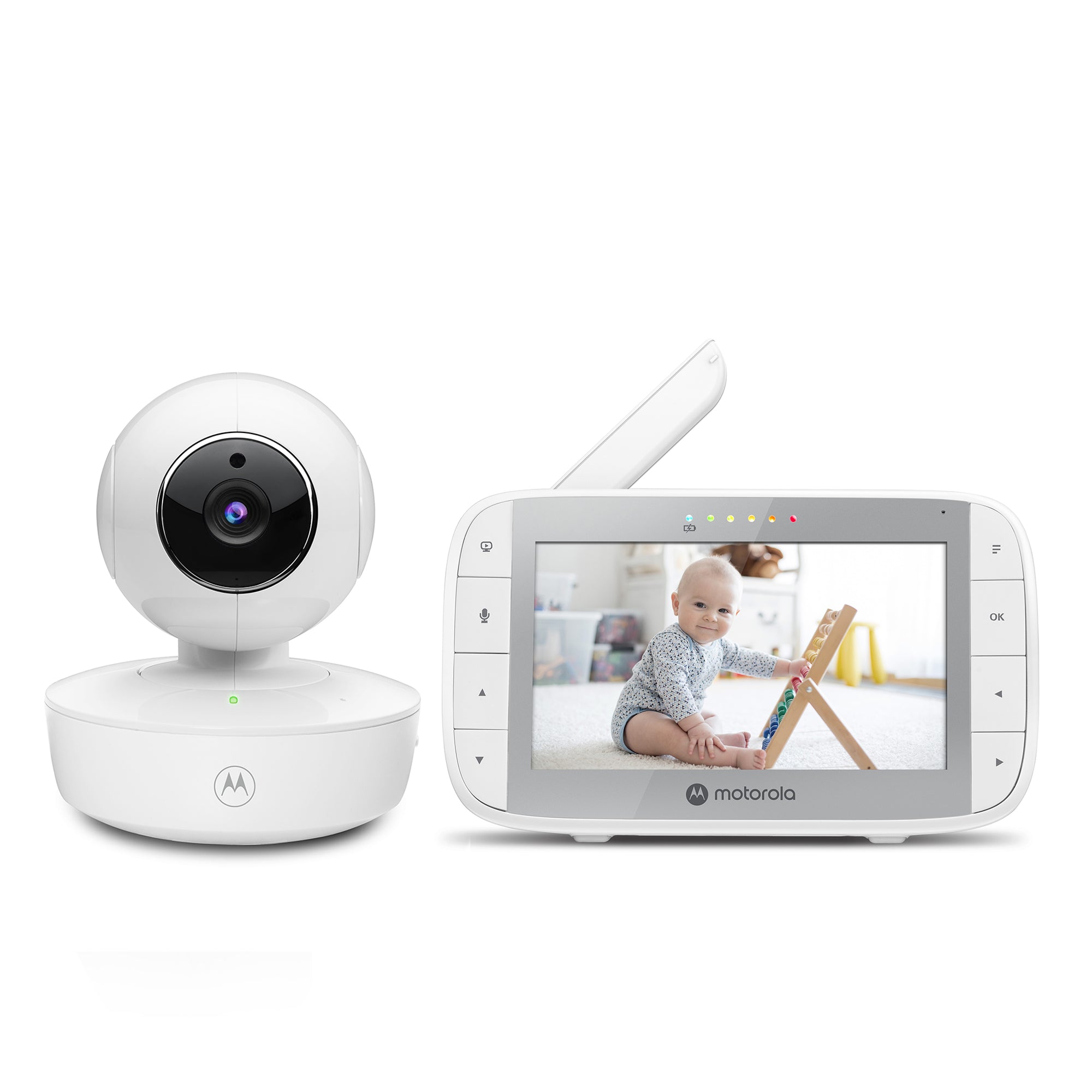 Motorola VM36XL includes a 5" HD display and a camera with remote pan, tilt & zoom and night vision. Speak to your little ones with two-way talk, and help them relax with the pre-loaded nature sounds, lullabies and audiobooks.